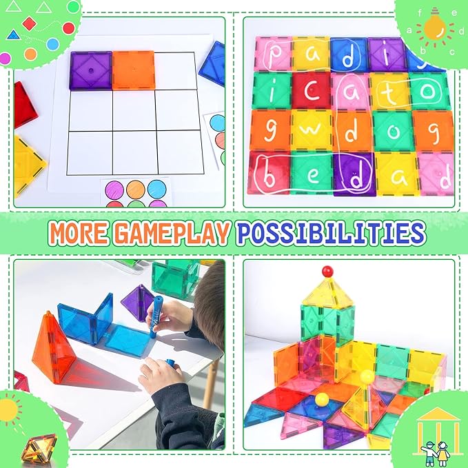 - 【GROWS UP WITH KIDS & OPEN-ENDED PLAY】 We can play all kinds of games with magnetic blocks, puzzles, shadow games, find words, dollhouses, etc. STEM-approved magnetic blocks inspire hours of instruction-free playtime while helping children develop math, science, spatial, and tactile skills