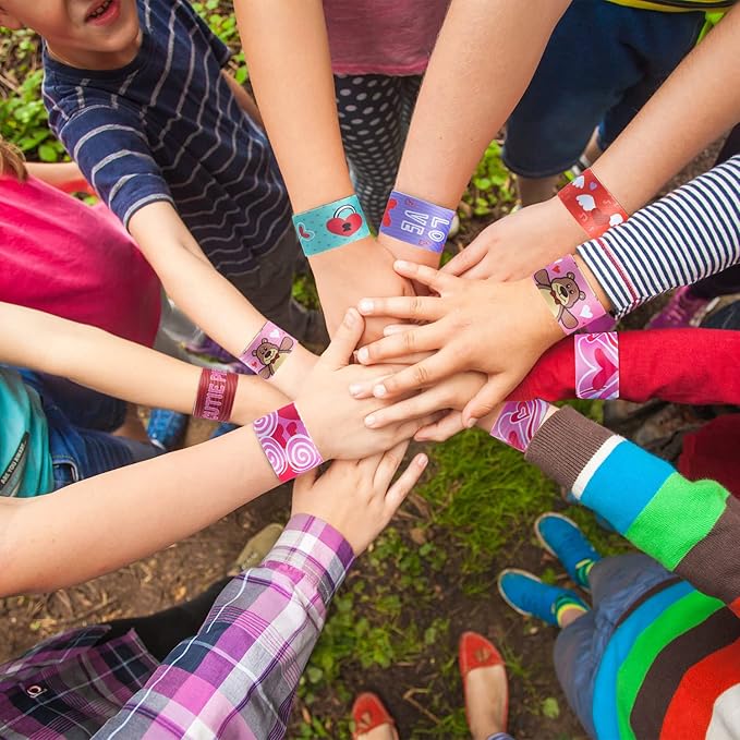 - SUPER VALUE PACK. Our Valentine's Party Favor includes 48 Pcs Valentines Day Slap Bracelets with 8 Unique Designs.