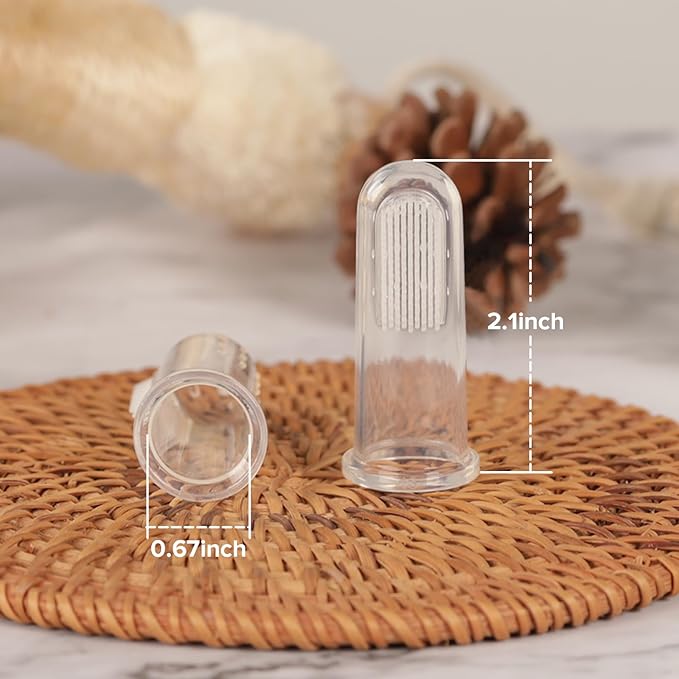 - 【𝗗𝗘𝗦𝗜𝗚𝗡】- Soft Baby Finger Toothbrush: Bumps on the back assist with soothing gums, while the bristle on the front keeps your baby’s teeth clean. Glide the brush along the gum line to clean and massage, providing relief for the baby.