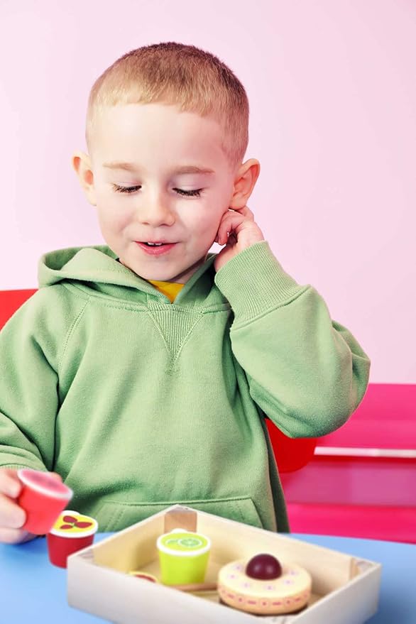 - Wooden Dessert Play Set: Abundance of freshly baked desserts with a wooden storage case for all accessories, size 6.7" x 4.9" x 1.4", to store everything for easy organization and portability. Christmas gifts toys kids toys toddler toys