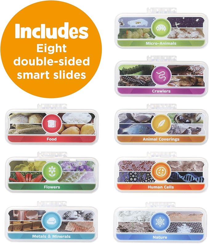 - Real microscope features up to 200x magnification; prepare your own samples using the reusable slides or use the tray to view samples that are too big for the slides