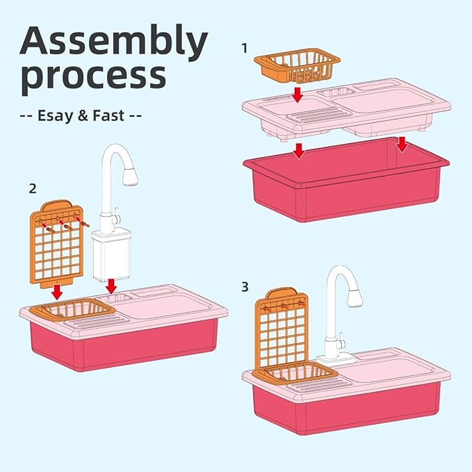 - 【Pretend Play】Child pretend to do housework as parents did, such as washing dishes and sorting things. Kitchen sink toys can improve children's color recognition, kitchenware recognition, and exercises hand-eye coordination ability.
