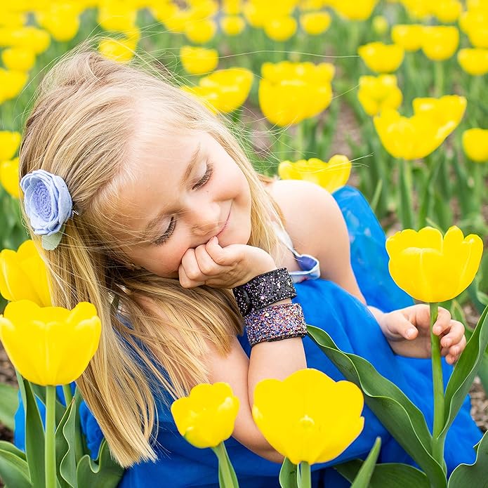 - Each glitter slap bracelet is made with soft vegan leather for added comfort; Measures 9 inches long and 1 inch wide