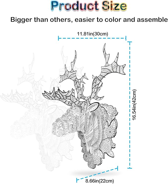 - 🦌🎁Bigger Size - 16.54 x 11.81 x 8.66 inches, bigger than 90% of the coloring puzzles on the market(just 6 x 5 x 2 inches), easier to color and assemble