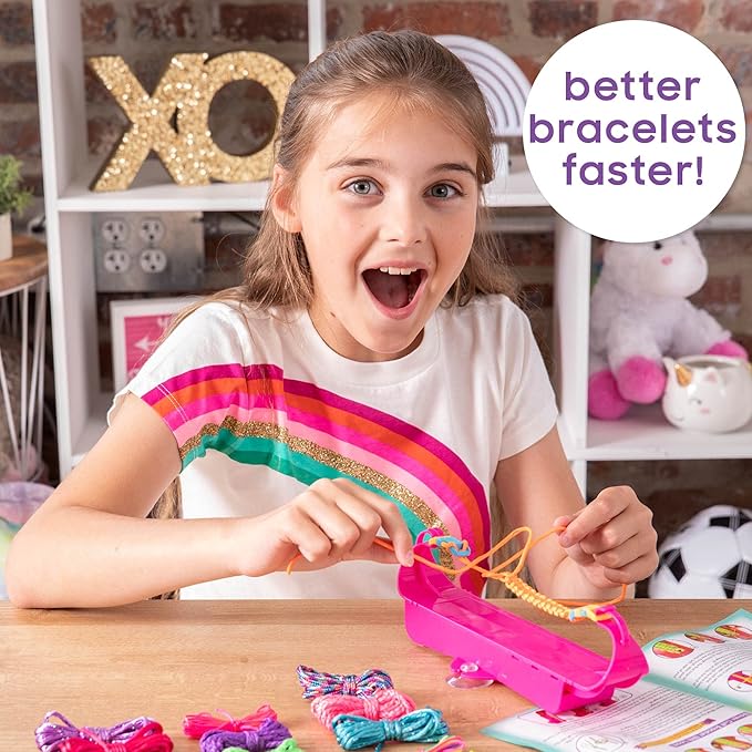 • BRACELET-MAKING MADE EASY: This all-in-one bracelet-making kit comes with a tool that makes it easier than ever to create bracelets — stick the suction cups onto any flat surface and use the hook to knot, braid, and bead with ease!