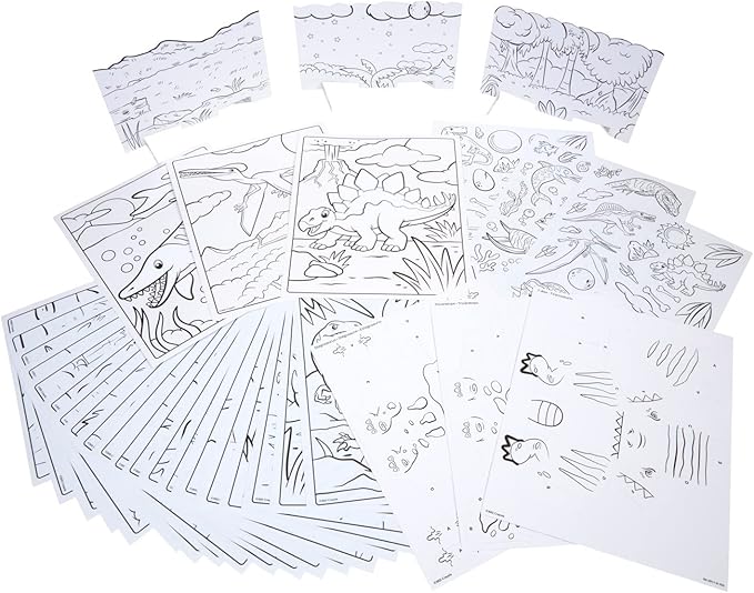 - DINO DELIGHT: Dive into a prehistoric world with this kit, perfect for dinosaur lovers! Includes flocked coloring pages, pop-out origami, and more.