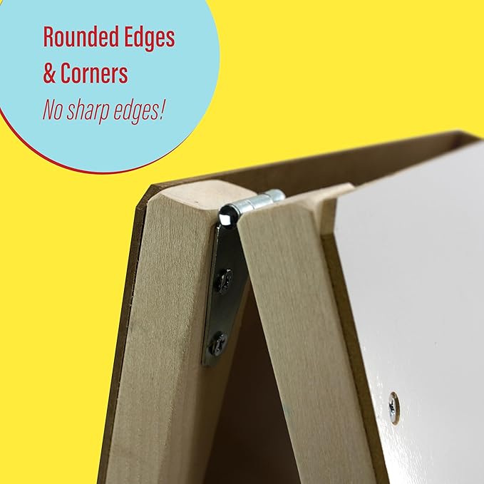 • CONVENIENT STORAGE – Includes a large center tray for storing markers, chalk, and other supplies.