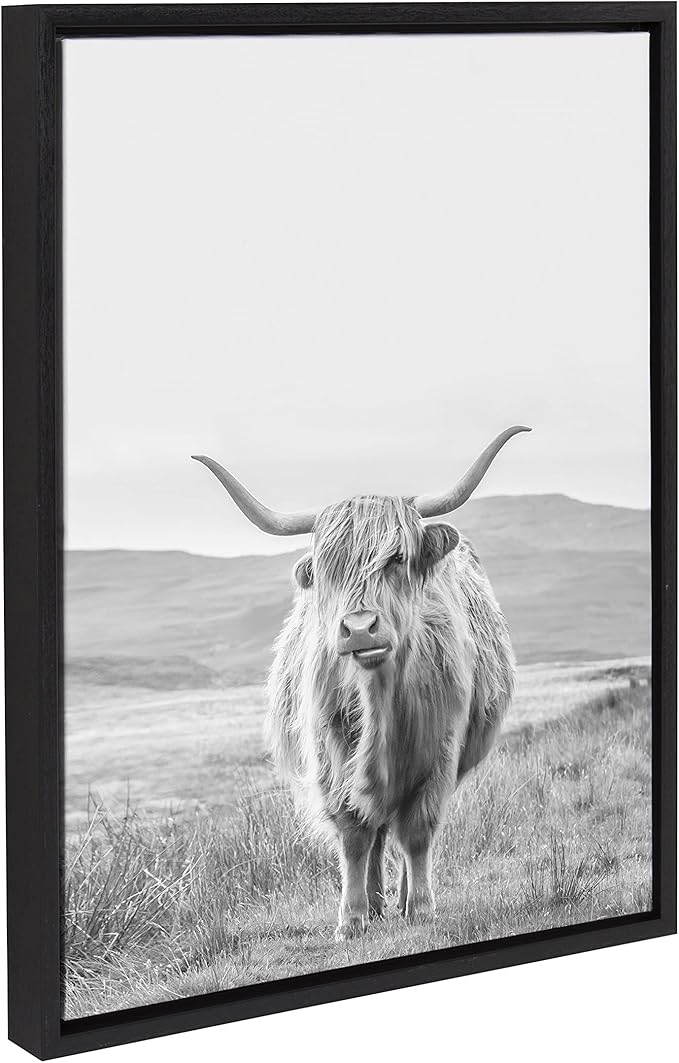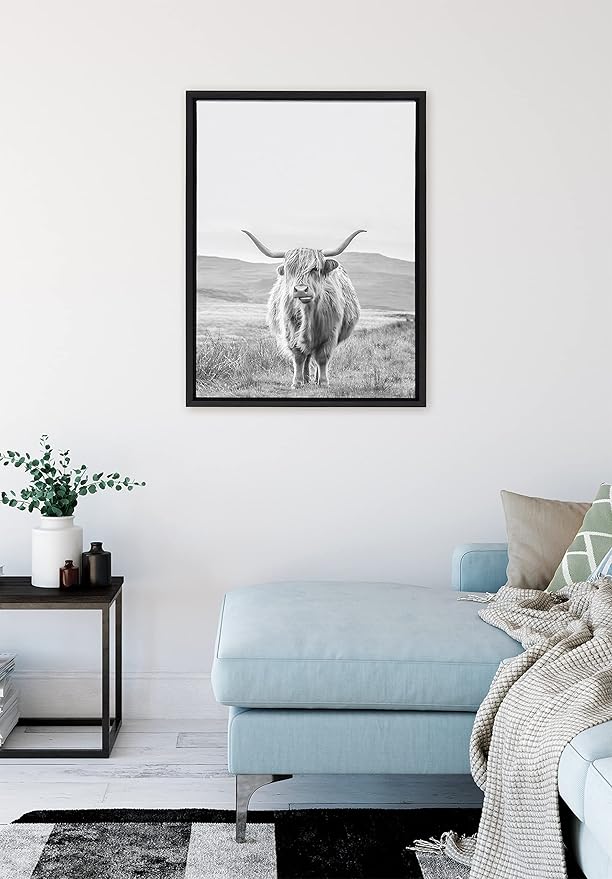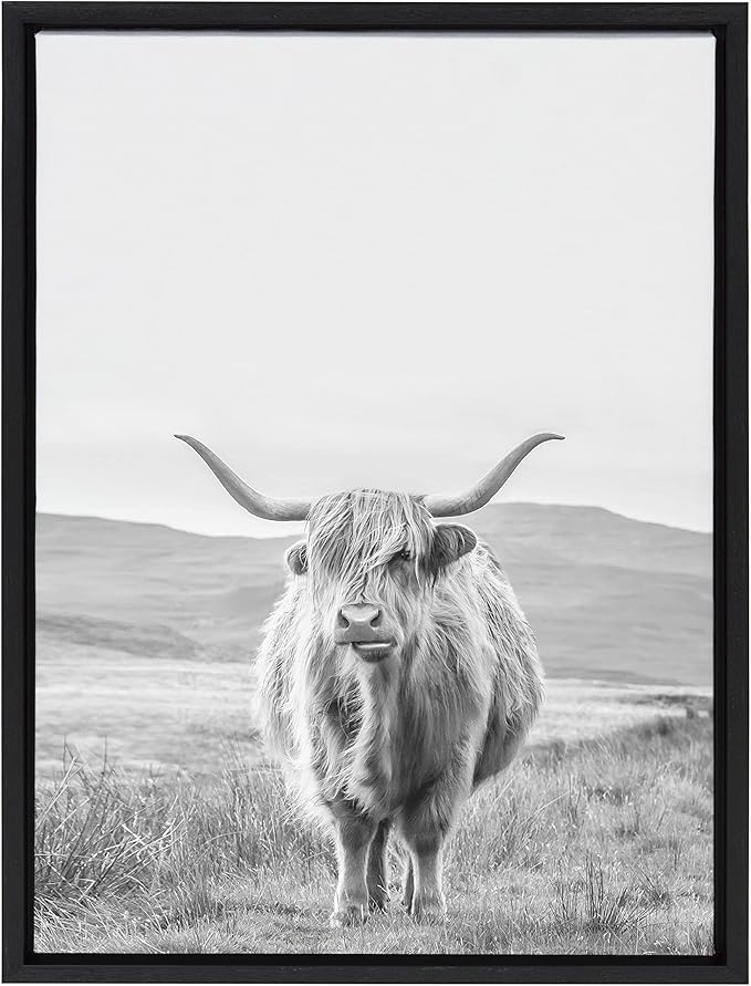 - ARTIST DESIGNED: Print "Highland Cow Mountain Landscape Black and White" 2022 The Creative Bunch Studio