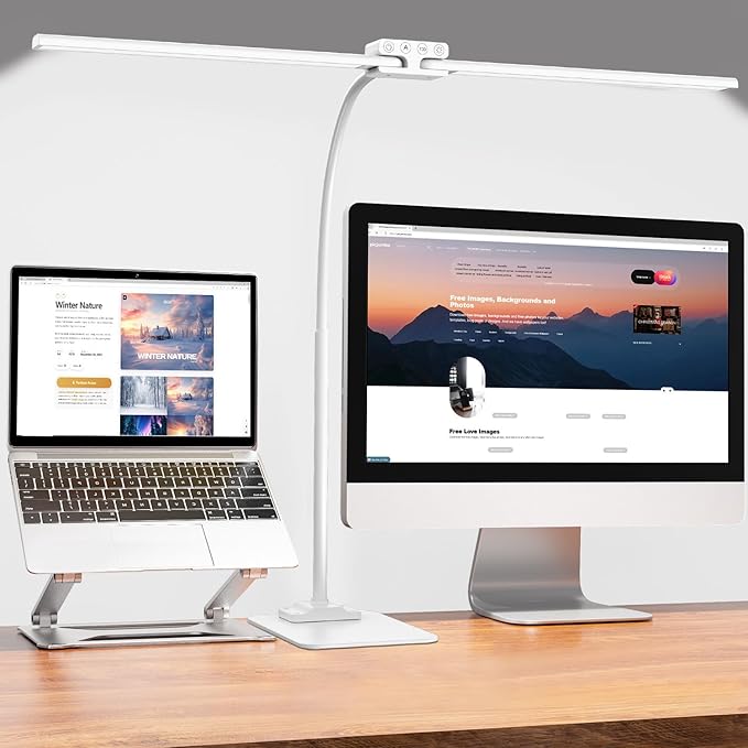 EppieBasic Led Desk Lamp,24W 31.5IN Architect Double Head Desk Lamps for Home Office,Dimmable & 6 Color Modes Extra Bright Modern Table lamp with Base,Overhead Computer Lighting for Workbench Monitor
