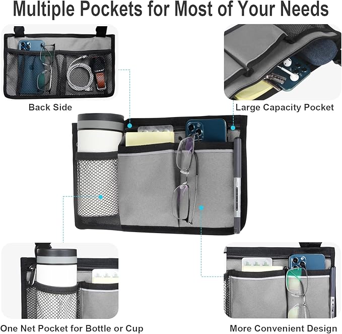- ✔ Durable for Long Time to Use: This armrest side bag is made of Super Abrasion Resistant High Quality Waterproof Fabric. You can attach and remove the storage bag easily with the durable adjustable straps for last a longtime using.