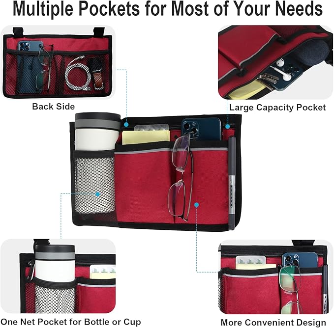 - ✔ Durable for Long Time to Use: This armrest side bag is made of Super Abrasion Resistant High Quality Waterproof Fabric. You can attach and remove the storage bag easily with the durable adjustable straps for last a longtime using.