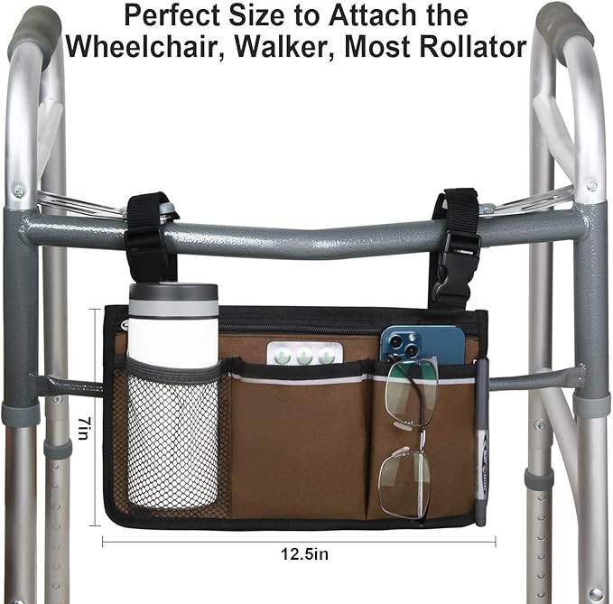 - ✔ Fit Most Wheelchairs or Walkers: Featuring adjustable fastener straps can be easily attached to most wheelchairs, walkers, rollators or mobility scooters.