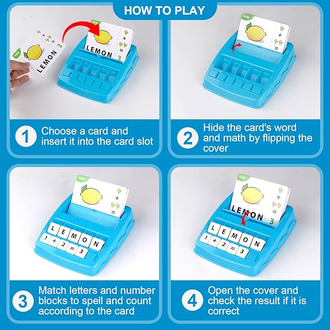 - Safe Material & Friendly Design: Made of high-quality ABS plastic, this spelling game for kids ages 4-8 is falling-resistant and safe for children. The cards and tray are designed with rounded edges to protect children's fingers from hurt. Warning: small parts. Not for children under 3 years old.