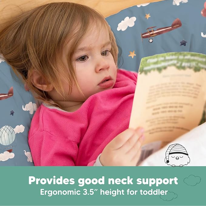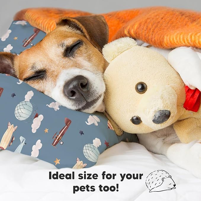 Toddler Pillow with Pillowcase - 13x18 My Little Dreamy Pillow, Organic Cotton Toddler Pillows for Sleeping, Kids Pillow, Travel Pillows, Mini Pillow, Nursery Pillow, Toddler Bed Pillow (Up & Away)
