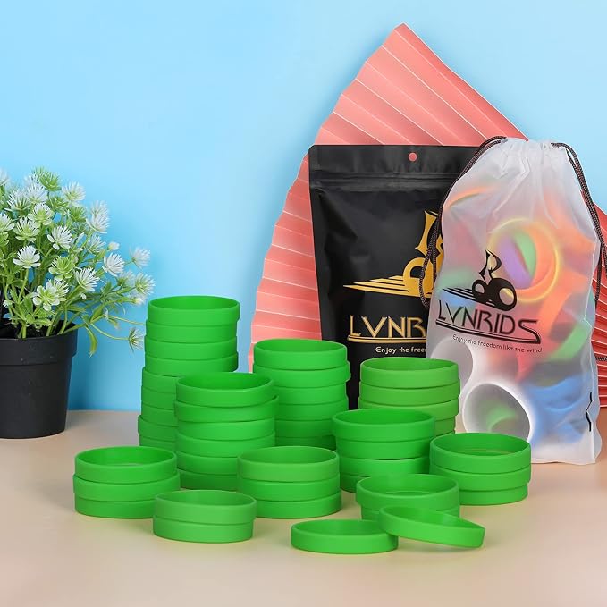 50 PCS Silicone Bracelets Wristbands for kid, Sports Rubber Elastic Wristband Bracelet for Party Decorations Favors Set Pack Green