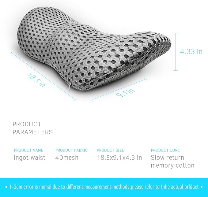 - Cushiony and Breathable: The 4D air-cool mesh on the lumbar pillow cover is highly breathable for comfortable contact. Also, the quality memory foam inside absorbs shock during driving and perfectly fits the human spine curve and offers cushion & comfort to your waist no matter you sit or lay.