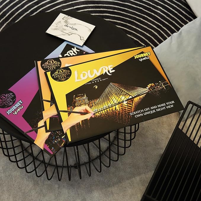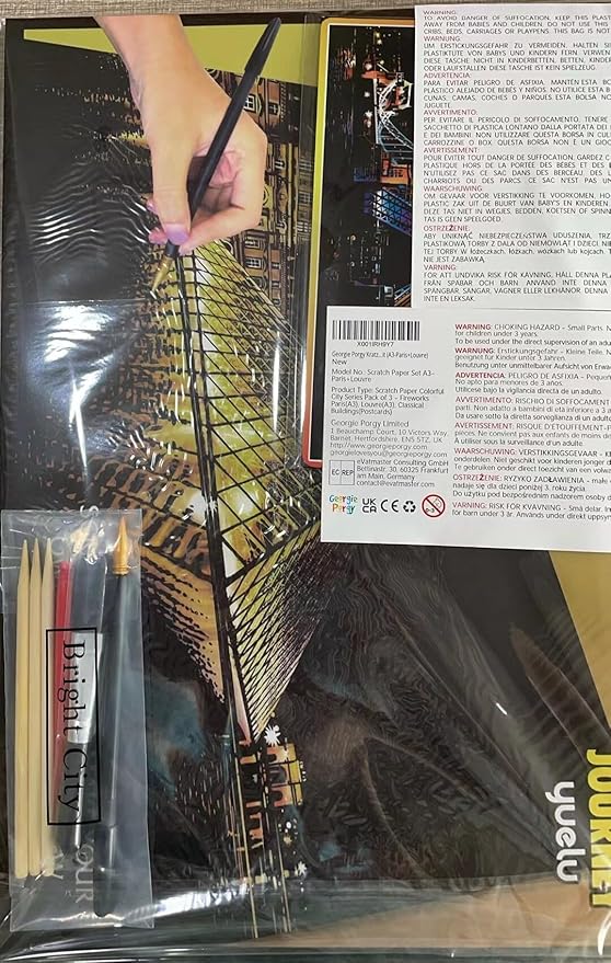 Georgie Porgy Scratch Paper Art A3 Set DIY Arts and Crafts Kits for Kids Adults, Magic Rainbow Scratch Postcard for Christmas Birthday Gift with Scratching Tools Kit (Paris + Louvre)