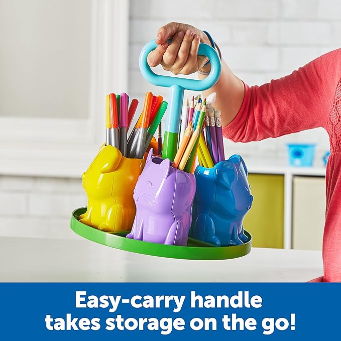- Portable Storage Solution: Teach kids early playroom organization skills with this friendly storage caddy’s colorful pet cups!