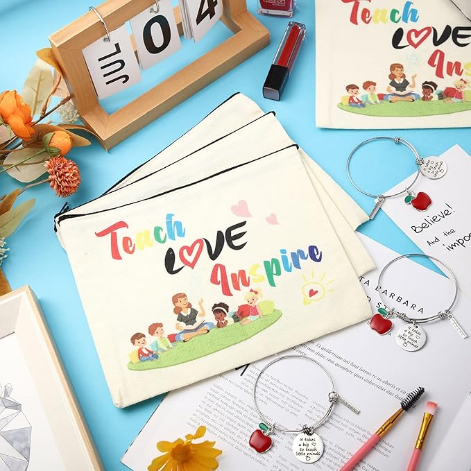 - Nice combination: these teacher appreciation gifts include 4 pieces of teachers cosmetic bags and 4 pieces of teacher bracelets carved with warmhearted words, cute and thoughtful combinations can meet your gifting needs