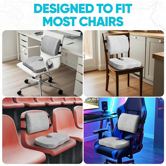FORTEM Seat Cushion, Office Chair Cushion, Lumbar Support Pillow for Office Chair, Memory Foam Sciatica Coccyx Tailbone Pressure Pain Relief, Car Sitting Pad, Washable Non Slip