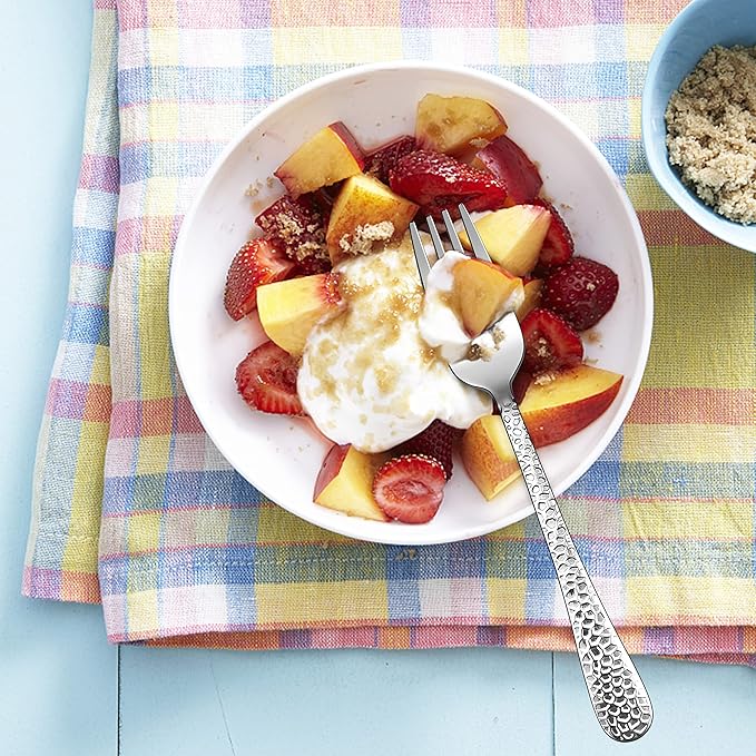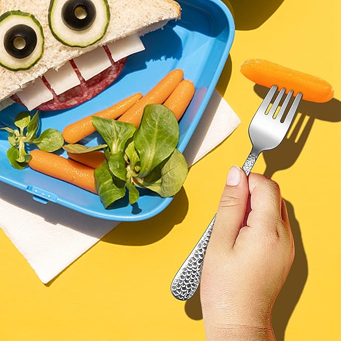 E-far Stainless Steel Kids Forks, 6-Piece Toddlers Forks Safe for Preschooler/Children, Hammered Adult look & Small Size, Rust Free & Dishwasher Safe