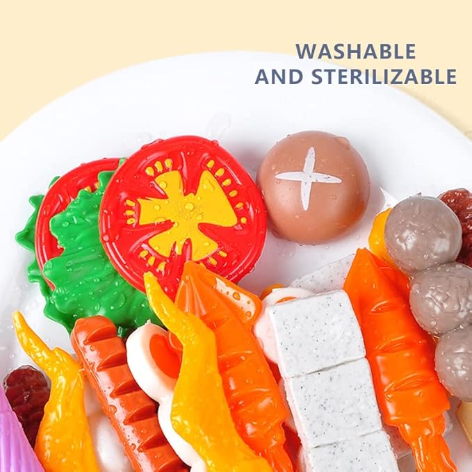 - 🍖【 Pretend Making Multi Foods 】The grilling kitchen playset comes with several toy food, Kids can pretend to make grilled chicken wings skewers,There are also two clips for children to clip game food.All the food toys are in realistic design, developing kids motor skills during the play kitchen fun.