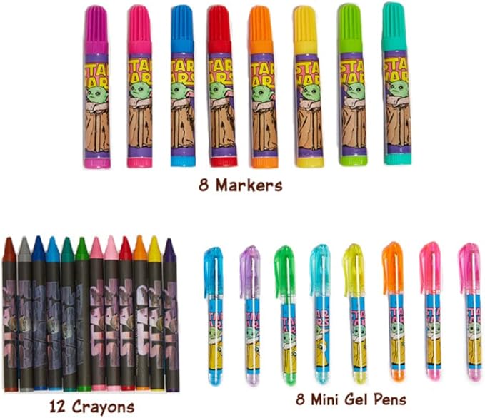 - 500+ PC. BABY YODA ART SUPPLIES - All the art supplies kids need are included in this fun activity set with over 500 pieces! Kids can stamp, color, draw, sticker, and even give themselves tattoos.