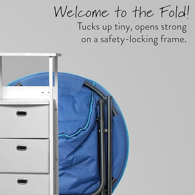 - FOLDABLE: A foldable steel frame supports up to 225 lbs and folds flat when not in use, making it easy to hide this decorative saucer chair out of sight without taking up a significant amount of room in tight spaces. This saucer chair also has a safety locking mechanism on the leg for added support. Carry this saucer chair with you to your next destination, as it is also travel friendly.