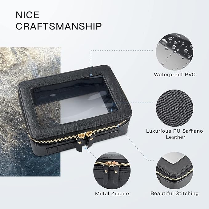 - ❤【TSA-APPROVED COMPANION】This makeup travel case is perfect for traveling as it is TSA compliant. The transparent panels help you keep track of everything you've packed. Our cute zipper pouch allows you to travel in style and with ease either at that TSA checkpoint or in of your destination bathroom.Reduce mess with our transparent train case.