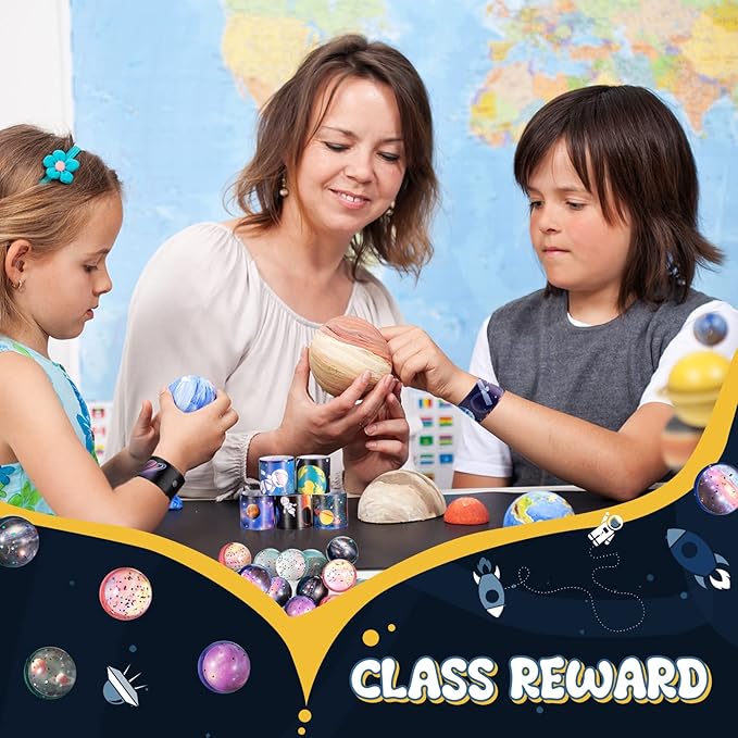 - Package Information: you will get 32 pieces of space themed party supplies, including 16 pieces of space bouncy balls and 16 pieces of space slap bracelets, abundant quantity will meet your needs