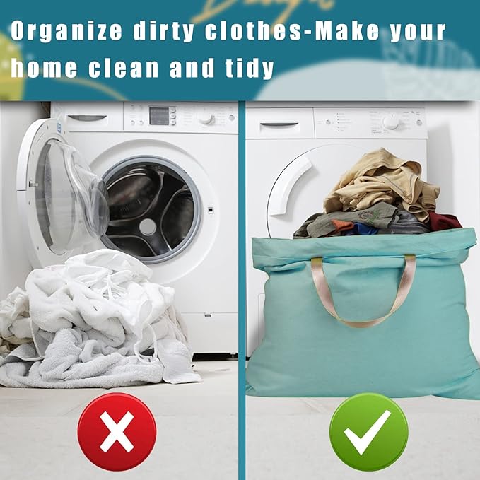 - EASY CLOSURE & CARRY: The laundry bag with drawstring can closure easily, you can tie a knot and prevent spill of your clothes. Design with handles, convenient to carry and you also can hang it on the wall or anywhere with hooks.