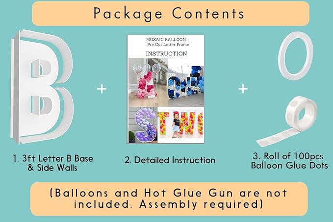 - FAST and EASY ASSEMBLY - Decorate your party like an event balloon artist! Our 3ft mosaic balloon letters are pre-cut to the perfect measurements, saving you the hassle of printing, measuring, and cutting templates yourself!