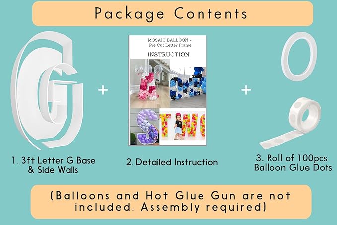 - FAST and EASY ASSEMBLY - Decorate your party like an event balloon artist! Our 3ft mosaic balloon letters are pre-cut to the perfect measurements, saving you the hassle of printing, measuring, and cutting templates yourself!