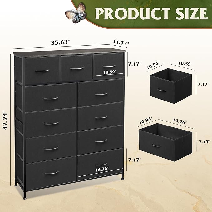 - 【✨Extra-large storage】This dresser organizer is ideal for wherever you want to keep clutter under control, equipped with 11 detachable fabric drawers and spacious woodtop, which facilitate the orderly storage of daily items, while the desktop provides display space for artworks and small ornaments, and more life style!