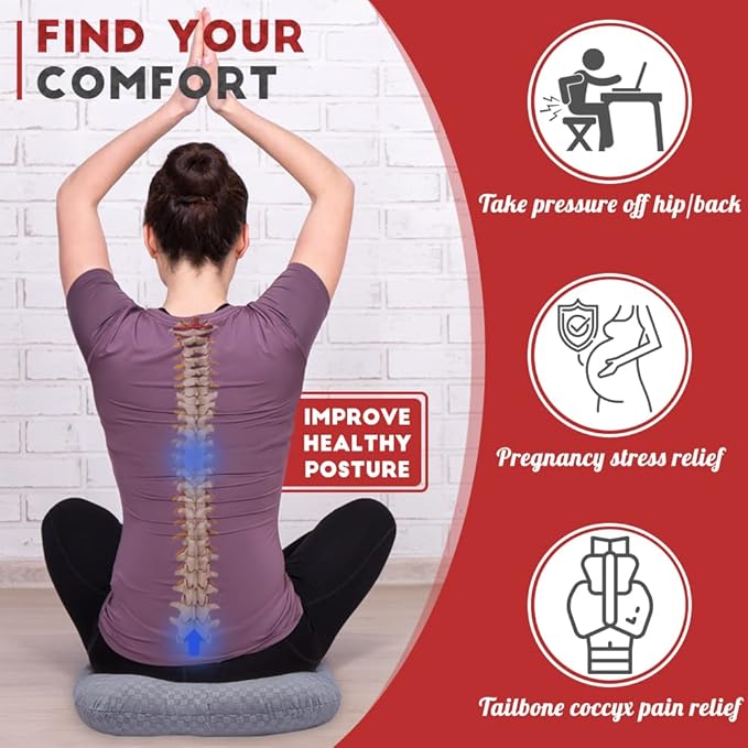 - Safe & Healthy Sitting - The seat pillow helps relieve pressure from your back or pelvic region while sitting for extended periods, also an ideal solution for people suffering from hemorrhoids, bed sores, broken tailbones, sciatica, coccyx pain, during pregnancies or post injuries.