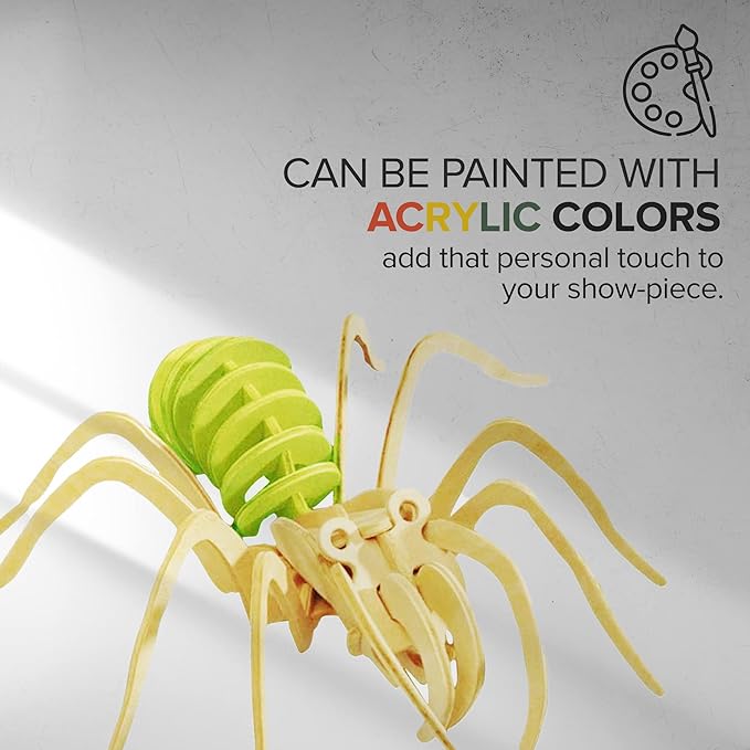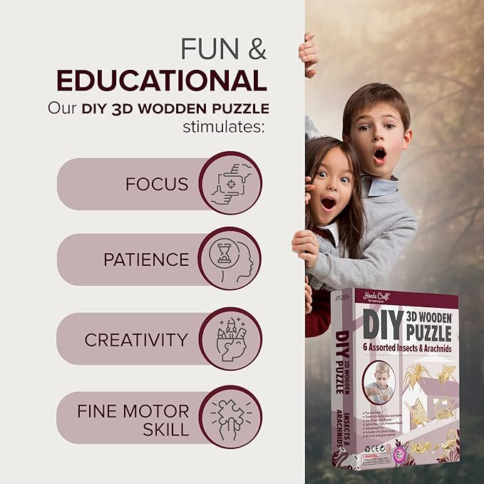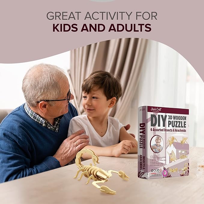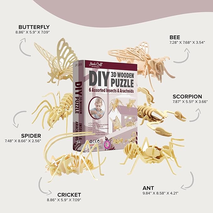 Hands Craft DIY 3D Wooden Puzzle – 6 Assorted Insects & Arachnids Bundle Pack Brain Teaser Puzzles Educational STEM Toy Adults and Kids to Build Safe and Non-Toxic Easy Punch Out Premium Wood JP2B9