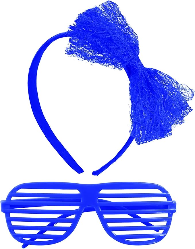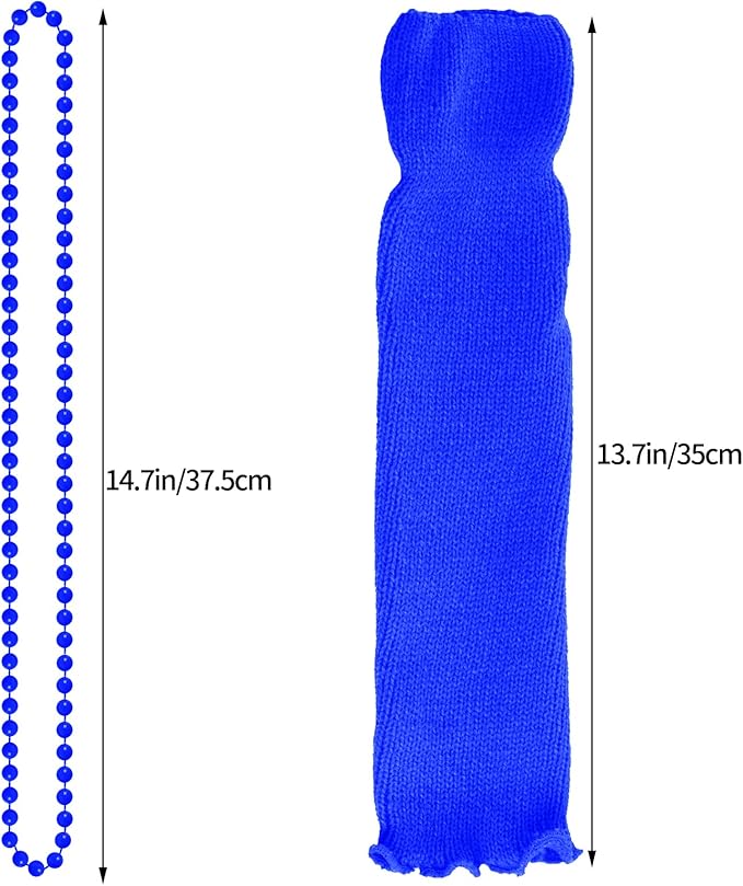- Package Content: 1 pc royalblue net yarn skirt(waist wide: 6.8"/17.5cm, which can be stretched to17"/43cm), 1 pair long gloves(10.2"/26cm), 1 pair of royalblue leggings socks(13.7"/35cm), 4 pcs solid color necklace(14.7"/35cm), a pair of shutters glasses and 1 pc lace headband bow.