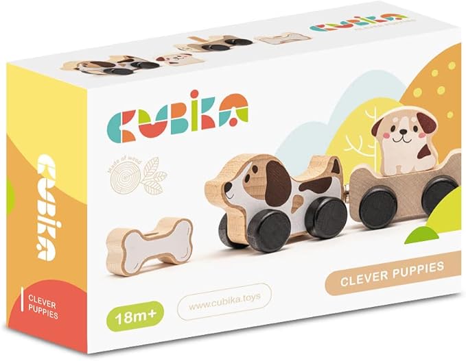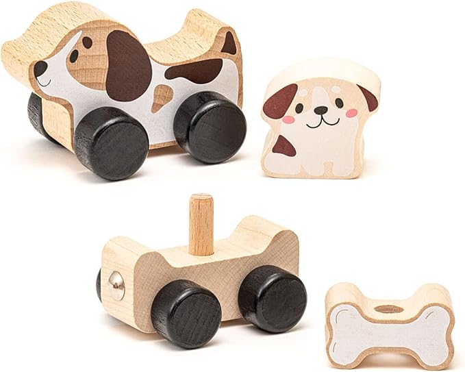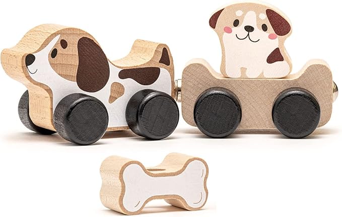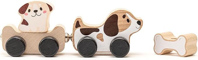 - ADORABLE PUPPY THEMED TRAIN TOY: This wooden train features rolling dogs and a magnetic trailer with a bone, providing a fun and interactive play experience for toddlers