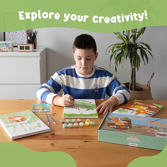 - 🦁 JUNGLE ANIMALS ARTS AND CRAFTS FOR KIDS 🦁 Canvas painting kit for kids is a perfect girl and boy crafts that promotes creativity. Each set contains a training sheet, which is a replica of the painting that will give kids the chance to experiment first. In addition, it contains a model sheet that will act as a guide for the kids to review and check while painting the canvas kids crafts