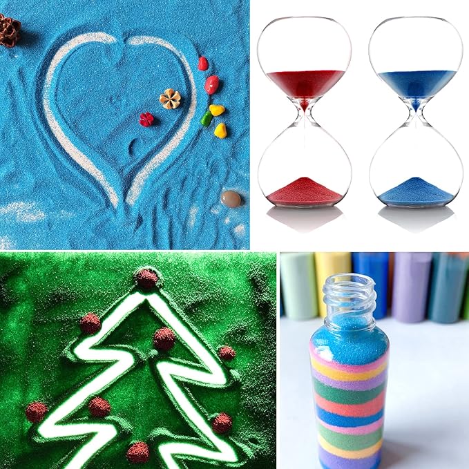- Safe and High Quality:The delicate colored sand is pure in color and safe for children. It can be used for sand painting, wishing sand, hourglass, DIY craft sand, etc. The color is uniform, the color will not fade after washing, and it can be stored for a long time