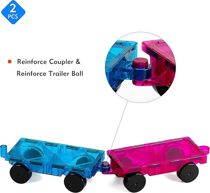 - 【Compatible With Other Magnetic Tiles】: Cars Can be Linked Together to Form a Train Buses Etc, With Connected Wheels so Make your tiles move.Turn this truck into a trendy race car or even link and combine as many cars together to make a moving train castle!