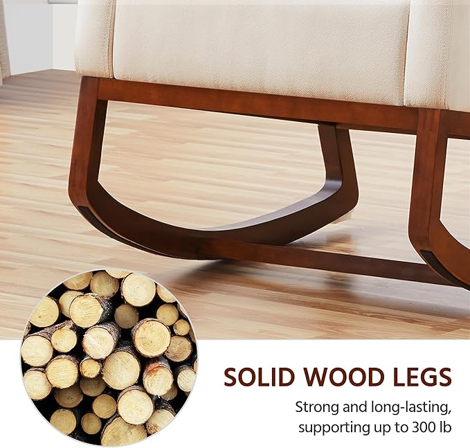 Yaheetech Rocking Chair, Modern Glider Chair, Recliner Armchair with Wood Legs and Side Pocket, Nursery Rocking Accent Chair with High Back for Living Room Bedroom, Beige