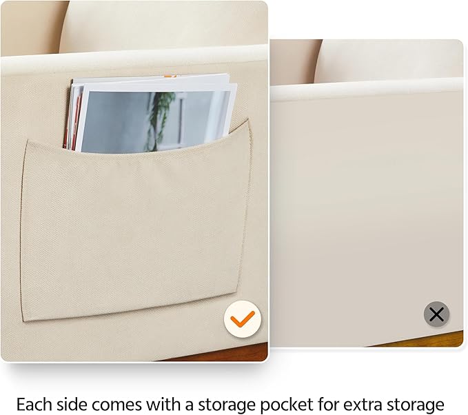 - Side Pocket & anti-tipping stopper: The rocking chair with side pocket keeps your recently read books or magazines close at hand, creating a perfect reading nook for you. The installed plastic stoppers at the ends of chair legs prevent you from tipping backward.