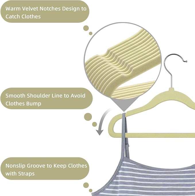 GoodtoU Kids Velvet Hangers,30 Pack Baby Hangers for Closet Non Slip Velvet Clothes Hangers Coat Hangers for Toddler Children Infant Hanger (Beige 30Pack)