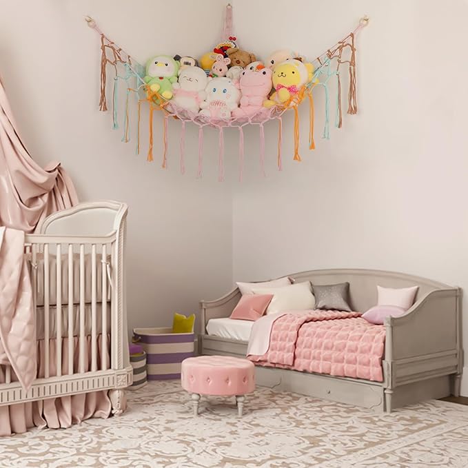- Turn Messy Toys Into A Decoration: Transparent mesh design makes the toys have good visibility, suitable for displaying stuffed animals; the boho stuffed animal net is also a good decoration for your room, at the same time for your boy /Girls create a cozy room.