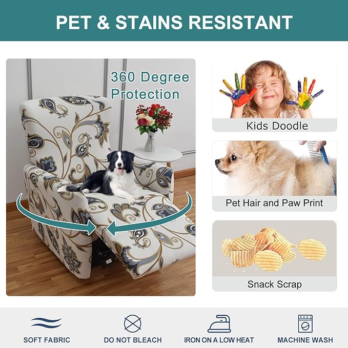 - Care Instructions & Beautiful Decoration: Hand or machine wash with cold water (around 30°C) using a gentle detergent. Do not bleach,Do not iron. A variety of colors for you to choose from. These beautiful recliner covers can extend the life of your recliner, making your old furniture look new again. Our recliner cover is thick and elastic, sewn to better cover the bottom edge of the recliner, ensuring that it stays tight and does not slip when we sit on it.