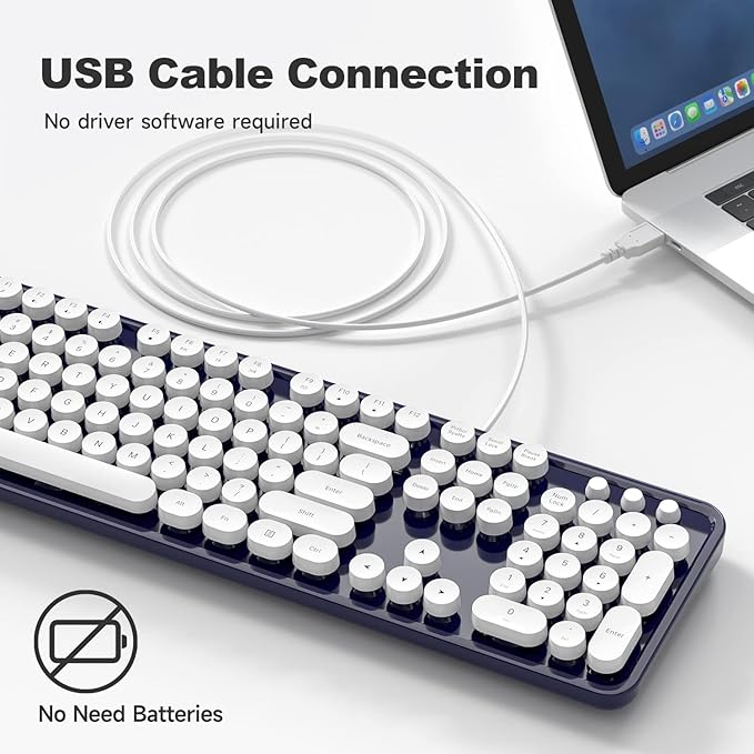 - 【Retro Typewriter Keyboard】Cute round keycaps, crisp and sweet sound, perfect knocking feel, let you find the feeling of a retro typewriter. And it’s detachable, making the keyboard easy to clean.