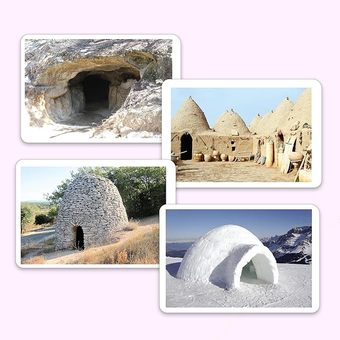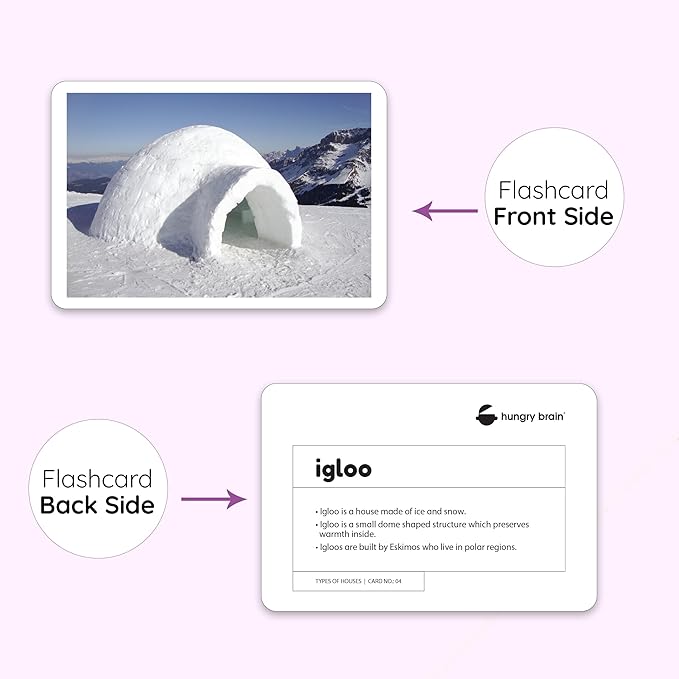 hungry brain Flash Cards for Toddlers, 24 Types of Houses Flashcards, Double-Sided, Montessori, Educational, Kindergarten - Preschool Learning Activities, Gifts for Kids, 1, 2, 3, 4 Years Babies