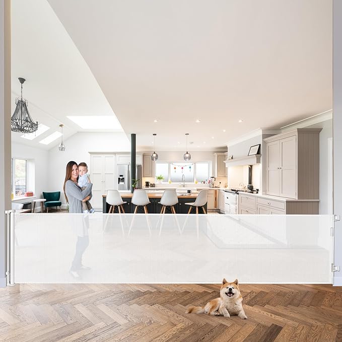 120 Inch Extra Wide Baby Gate for Doorways Extra Long Retractable Baby Gates Dog Gate for The House Large Pet Gate for Dogs Indoor Child Gates for Wide Openings Mesh Baby Gates for Dogs (White)