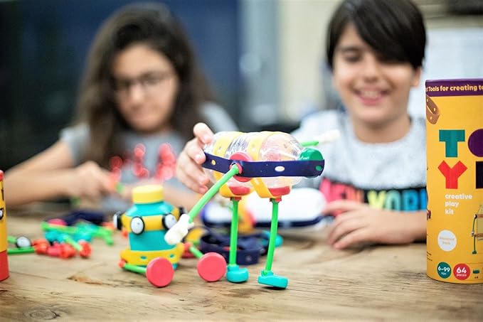 - SUSTAINABLE AND GOOD FOR ENVIRONMENT TOY: Toyi Building Kit is hyper-sustainable. We use 100% recycled plastic and paper to reduce our carbon footprint. Through playing with this toy, children learn upcycling by using disposable objects as the main parts of their creations, thanks to its unlimited transformation potential. Children will also learn to express their creativity through this revolutionary toy's arts and crafts aspect.